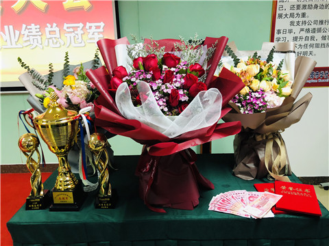 此次冠軍獎由我們的項目部王總監小組獲得!看著金光燦燦的大獎杯以及這么漂亮的鮮花,還一張張的紅色鈔票,大家都很激動呢!