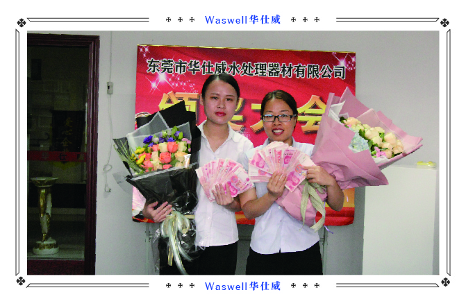 最后就是頒布“最牛達標獎”,由我們的麗娥小組獲得,這次我們的麗娥小組就像一匹黑馬,完全超乎我們的預料,成為賽馬場中的亮點,雖然她們以很小的差距與業績冠軍獎失之交臂,但是她們的氣勢就像在7月給了大家一個警鐘,并且她們在業績上達到了華仕威規定的業績,所以我們華仕威頒與獎金鮮花給予鼓勵。