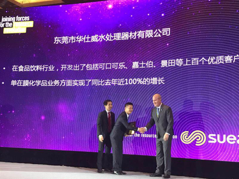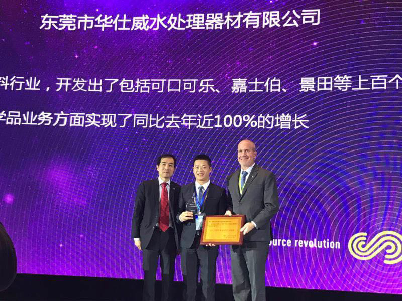在答謝晚宴上,蘇伊士水務(wù)技術(shù)與方案向我們?nèi)A仕威頒發(fā)了最大成長獎,華仕威不僅在食品飲料行業(yè),開發(fā)出了包括可口可樂、嘉士伯、景田等上百個優(yōu)質(zhì)客戶,還單在膜化學(xué)品業(yè)務(wù)方面實(shí)現(xiàn)了同比去年近100%的增長。