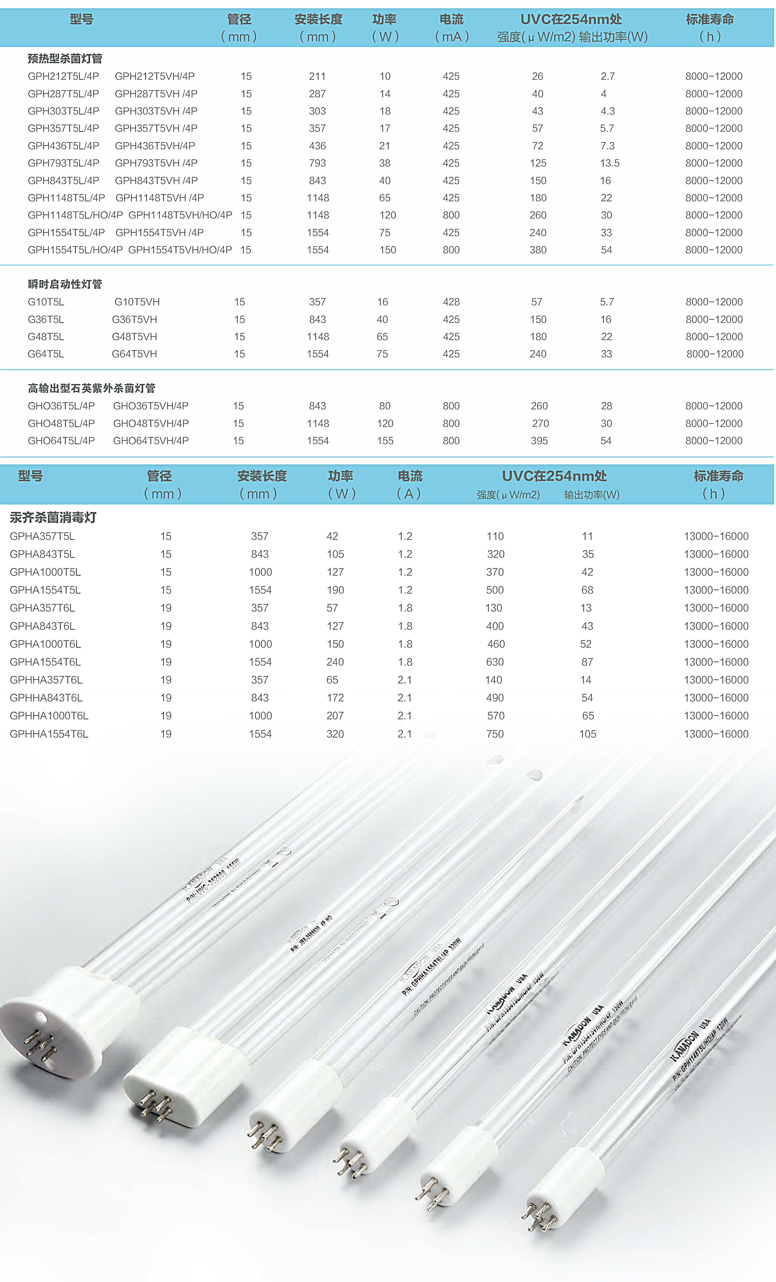 低壓汞齊紫外線殺菌燈 ? KANADON生產兩種類型的汞齊燈(汞丸和汞點)用于標準型和定制型汞齊燈,我們獨特的汞丸汞齊技術可以使低壓汞齊燈能滿足水平和垂直安裝。