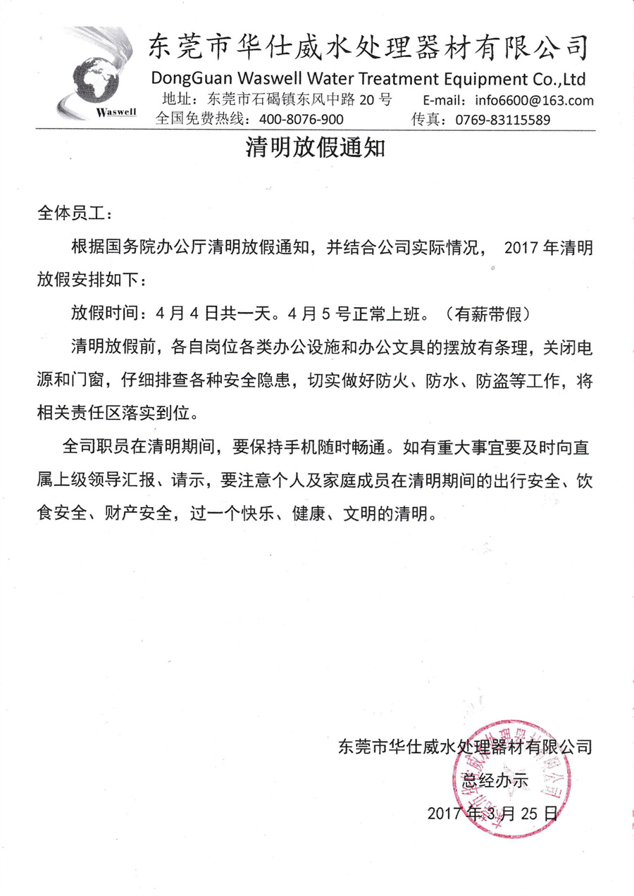 放假期間,我司不安排人員值班,不安排送貨,敬請各位新、老客戶根據產品儲存及銷售情況提前做好相應的采購,以保證假期期間正常使用。
