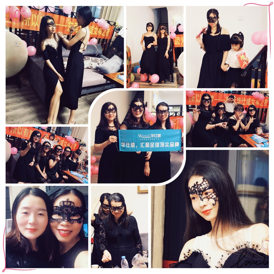 大概每個女孩都有一個華麗的夢,就在今晚9:30,我們舉行了華仕威女神派對!清澈明亮的瞳孔,彎彎的柳眉,長長的睫毛微微地顫動著,白皙無瑕的皮膚透出淡淡紅粉,薄薄的雙唇如玫瑰花瓣嬌嫩欲滴,華美的禮服一步一生花,緩步而來,搖曳生姿……音響播著時下流行的音樂,一個個美麗的身影在翩翩起舞,酒杯發出清脆的聲響,我們更靠近彼此了。今夜每一個女生都是璀璨的明星,照亮了今晚的夜空。